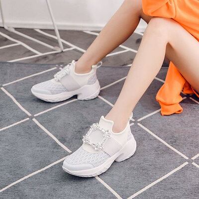 メガ割 厚底ブーツシューズ ビジュース厚底ブーツ スニーカー 運動 靴 レディース ウォーキングシューズ シューズ メッシュ スポーツシューズ レディース スクエア ビジュー モチーフ 黒