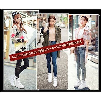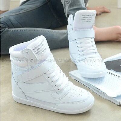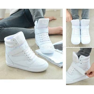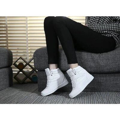 メガ割 厚底ブーツスニーカー レディース インヒール シークレットシューズ ハイカット 黒 ぺたんこ 美脚