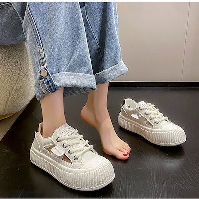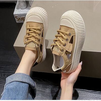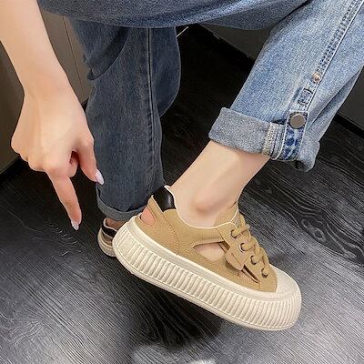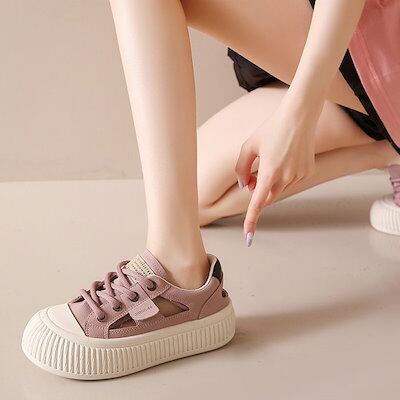 Chio'2nd厚底スニーカーレディース透かし彫り厚底スニーカーサンダル厚底lサンダル5cmレースアップスニーカーサンダルレディーススポーツサンダルカジュアルシューズ厚底シューズ夏軽量歩きやすい疲れないウォーキングシ