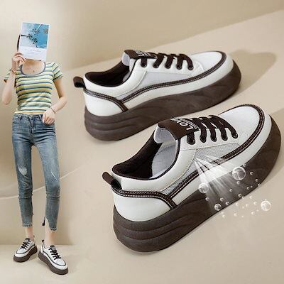 スニーカー夏 百掛け 厚底カジュアルシューズ 韓国ファッション 厚底靴 レディース 百掛け 快適軽量 スニーカー 通気性 フラットシューズ