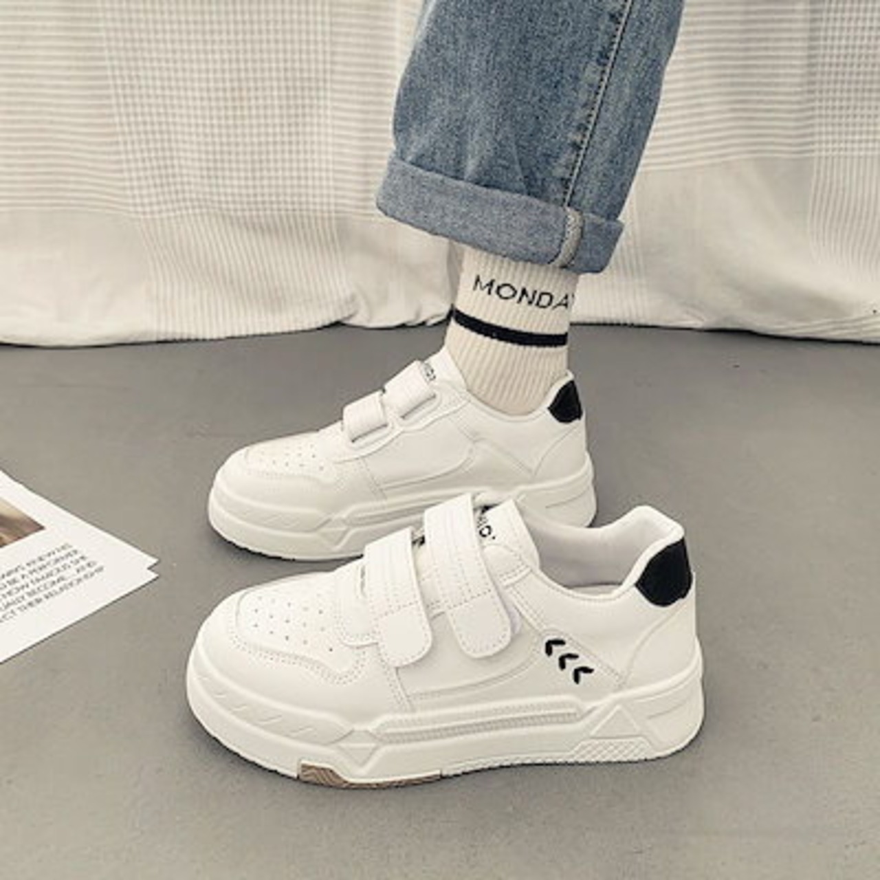 スニーカーシューズ レディース安い!ローカットスニーカー 厚底スニーカー 軽量 疲れない 黒 白 スニーカー レディースシューズキャンバスローカット マジックステッカー カンバス04