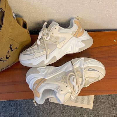 スニーカーシューズ レディース秋ダッドスニーカー韓国 スニーカー 厚底スニーカー カジュアルシューズ 通学ヒール高さ5CM ダッドスニーカ 冬 春