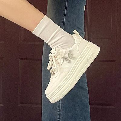 スニーカーシューズ レディース安い!ローカットスニーカー 厚底スニーカー 軽量 疲れない 黒 白 スニーカー レディースシューズキャンバスローカット マジックステッカー カンバス06