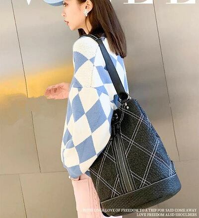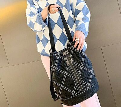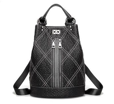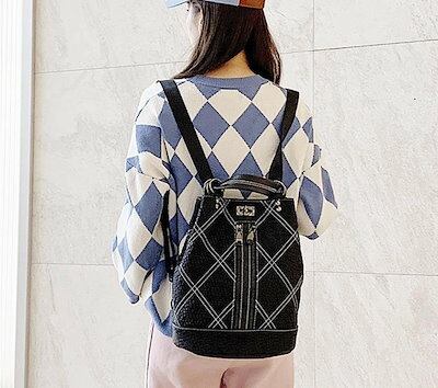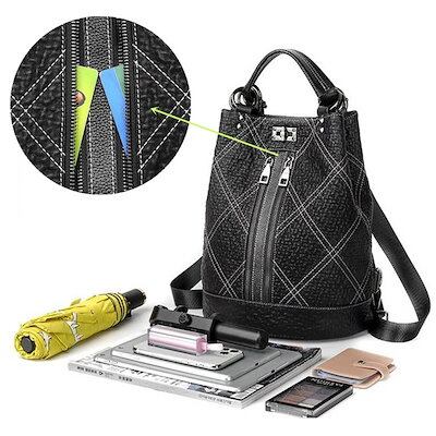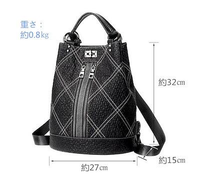 本革 最新レディースリュックサック ショルダーバック 2WAYデイパック 通勤通学旅行 おしゃれ レザー チェック柄 ブラック