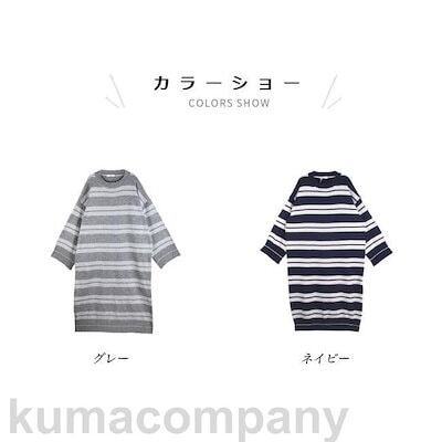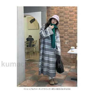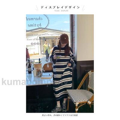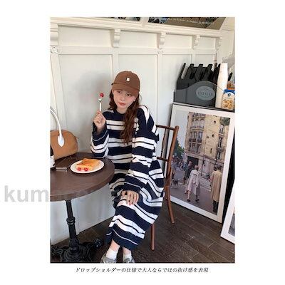 ニットワンピース オーバーサイズ レディース ニットワンピ ボーダー マキシ丈 ロングワンピ ニット 体型カバー ドロップショルダー クルーネック プレゼント