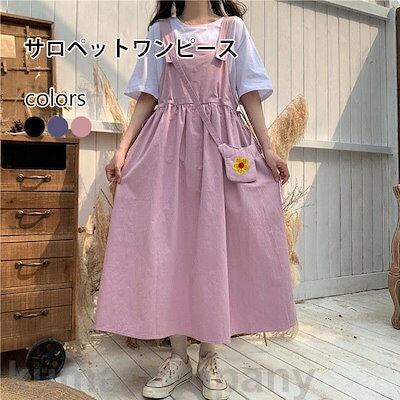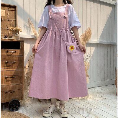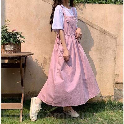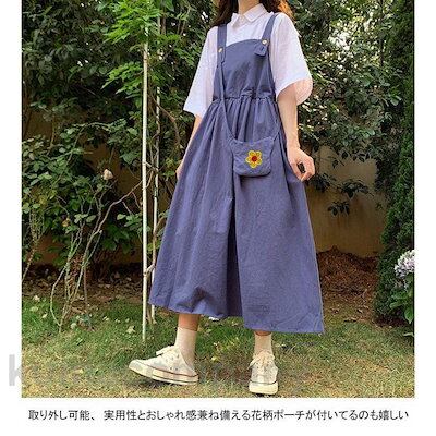 サロペット ワンピース 夏 レディース オーバーオール ロング サロペットワンピース マキシ丈 体型カバー サマーワンピース ポーチ付き プレゼント