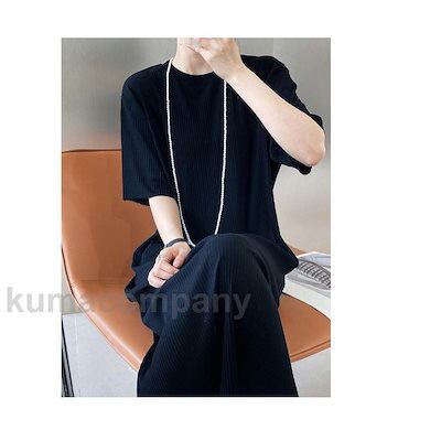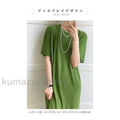 ワンピース レディース ロングTシャツ 無地 クルーネック 半袖 薄手 マキシ丈 プリーツ 伸縮性 通気性 ゆったり 着回し シンプル プレゼント