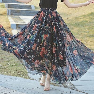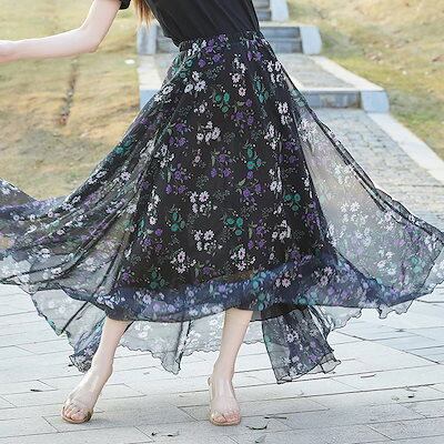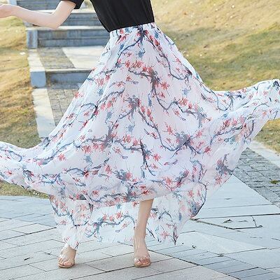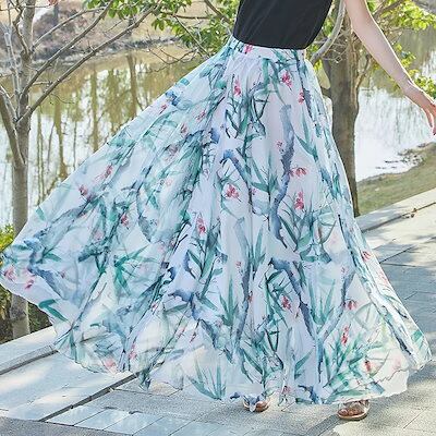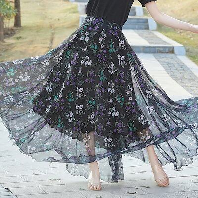 韓国 スカート 気質 ハイウエスト レディーススカート フレアスカートマキシ丈ワンピ ワイドスカート マキシ丈 大きいサイズ ゆったり 体型カバー 大人 着痩せ 30代 春 秋 夏