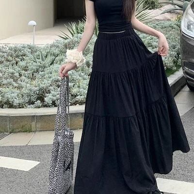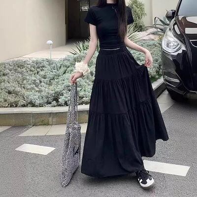 韓国 最旬トレンド スカート ミディアムスカート夏 薄手 ロング レディース ふんわり ゆったり 涼しい 薄手 ナチュラル プリーツスカート ロング丈 マキシ丈 無地 透け感 海 春夏
