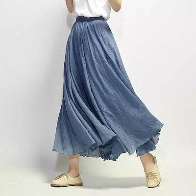 韓国 スカート ティアードスカート ボトムス レディース 無地 ロング丈マキシ丈スカート ウエストゴム ファッション カジュアル きれいめ 大人 着痩せ 春服 秋服