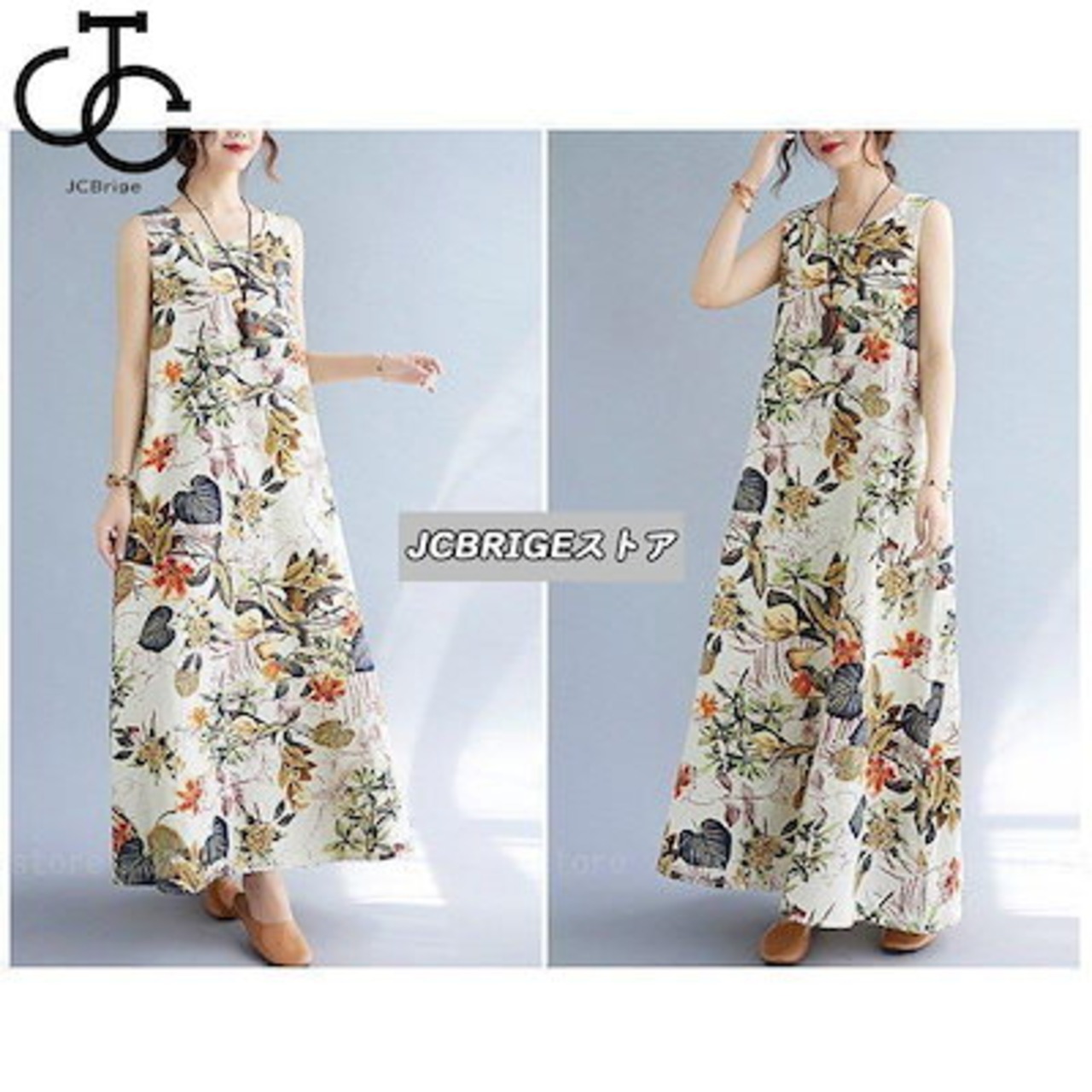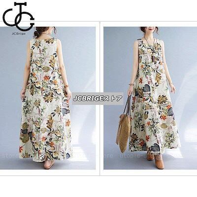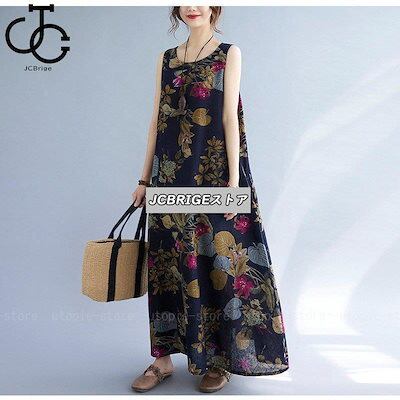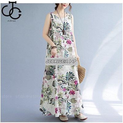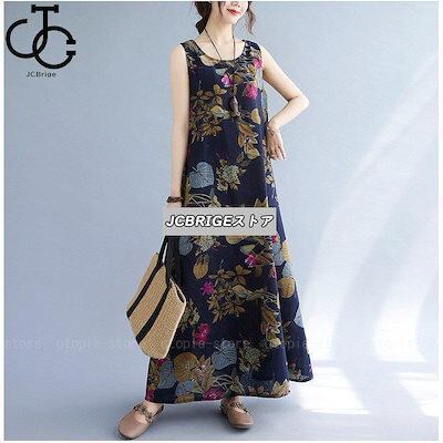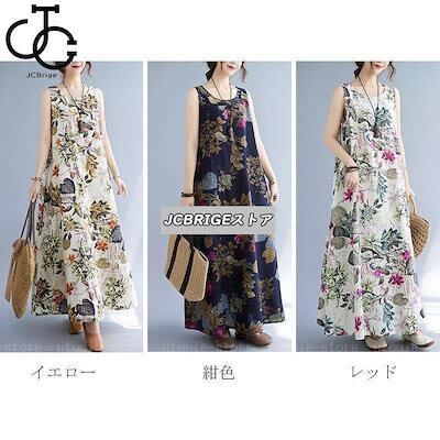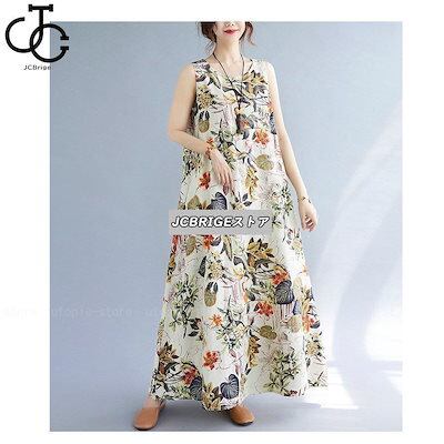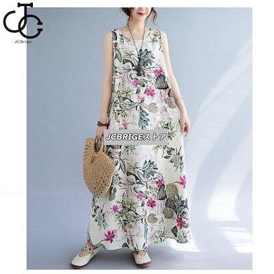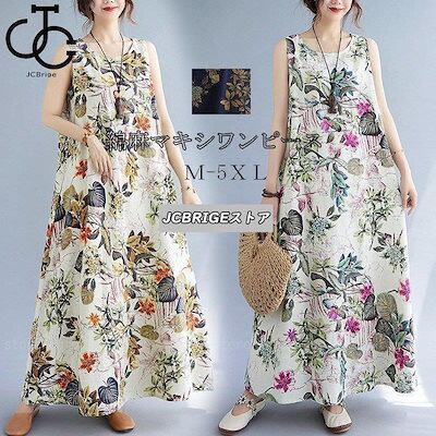ワンピース マキシワンピース レディース ロングワンピース 綿麻 40代 花柄 キャミ ロング リネン マキシ丈 大きいサイズ 体型カバー ゆったり 6L
