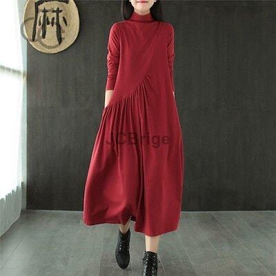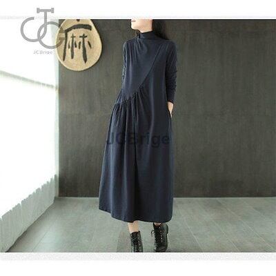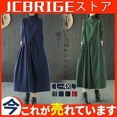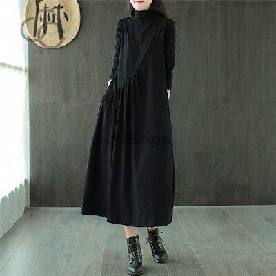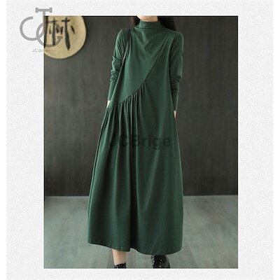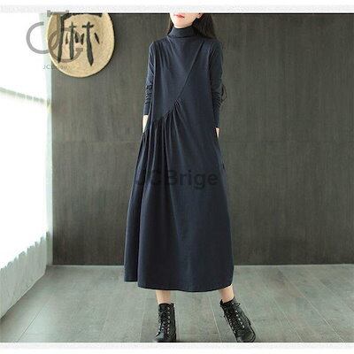 ワンピース レディース 秋物 長袖 カジュアル ロング Aライン マキシ丈 インナーワンピース ドレス 無地 ゆったり 着痩せ オシャレ チュニック