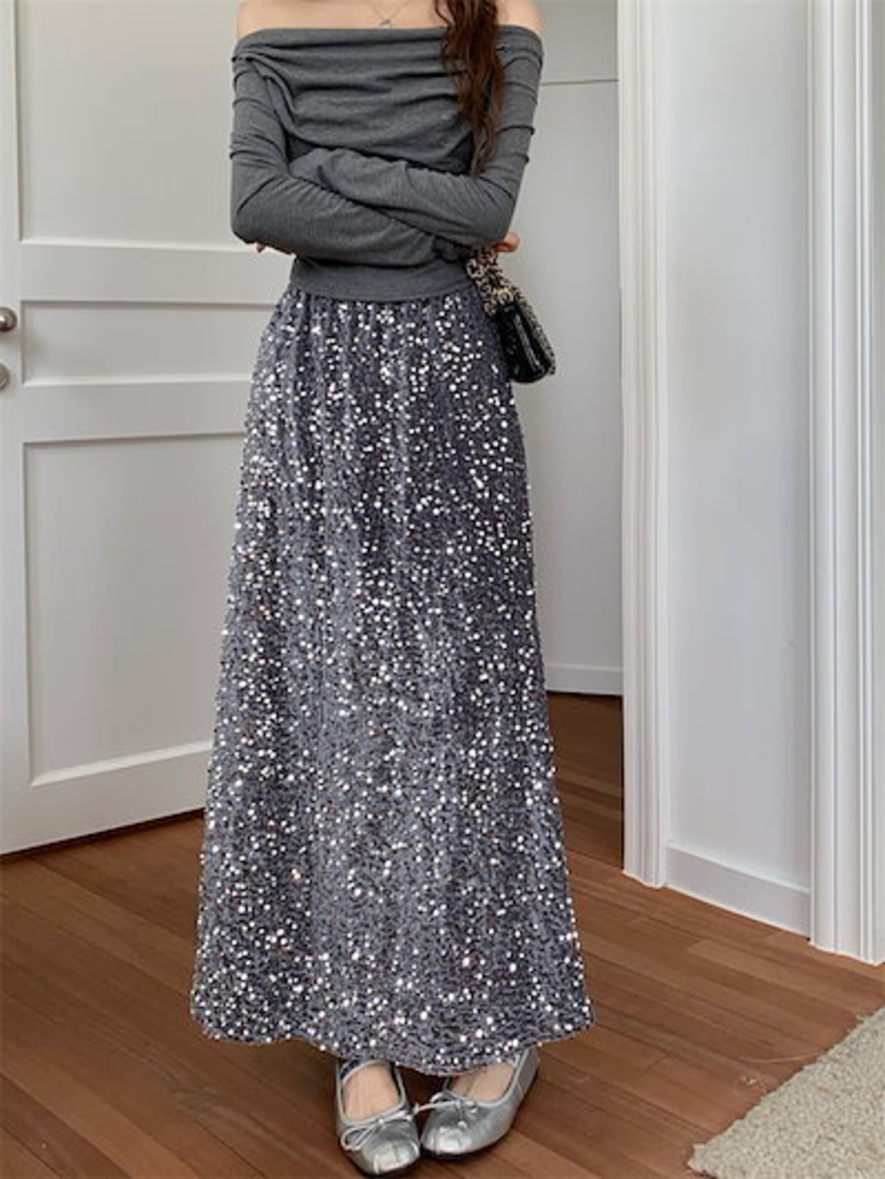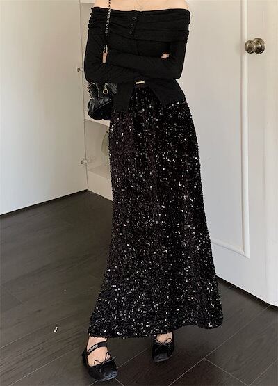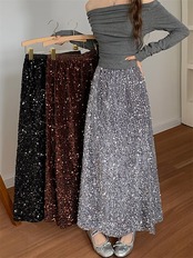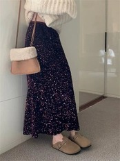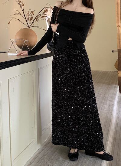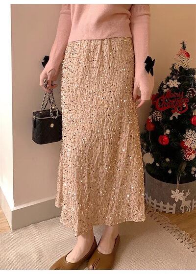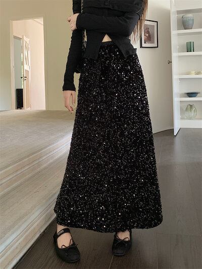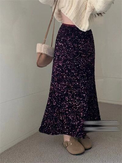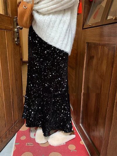 INSスタイル 大人気 ロングスカート 快適である ベルベット ビーズ レディース 伸縮性のあるウエスト スカート 宴会場 スリム