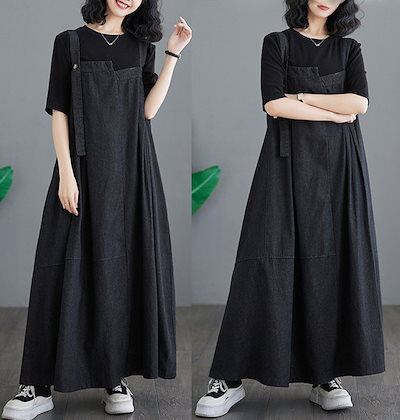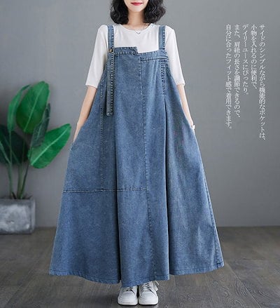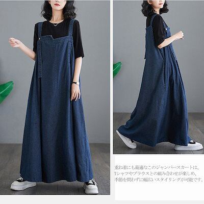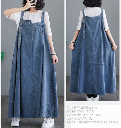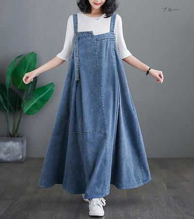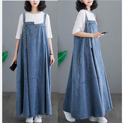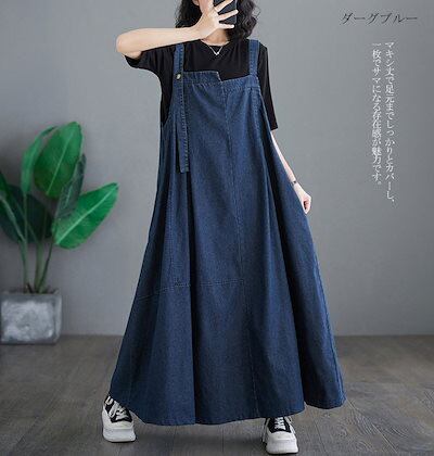 ジャンパースカート レディース デニム ワンピース サロペットスカート キャミワンピース 重ね着 ゆったり ワンピ ロングワンピース オールインワン ジャンパー サロペット スカート マキシ丈 オーバ