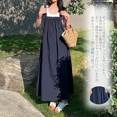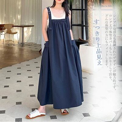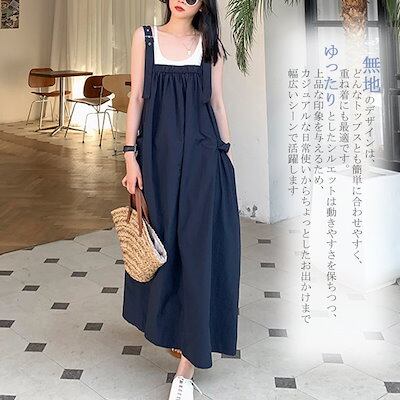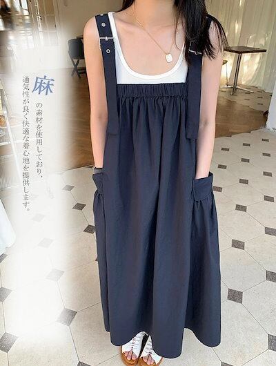 ジャンパースカート 夏 レディース スカート サロペットワンピース ロング マキシ丈ワンピース オールインワン サロペット 大きいサイズ 綿麻風 キャミワンピース 重ね着 無地 オーバーオール ゆった