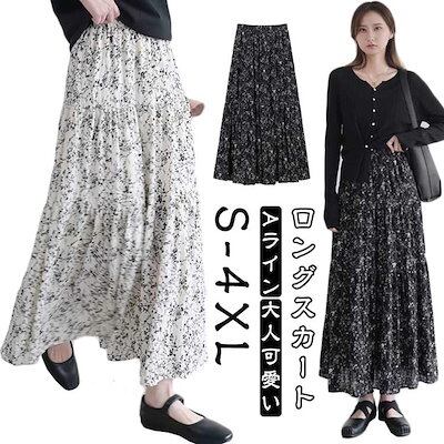 送料無料 マキシスカート 総柄 春夏 レディース スカート ロングスカート マキシ丈 ロング丈 ふんわり フレアスカート Aライン ウエストゴム 大人かわいい 森ガール 着痩せ おしゃれ ゆったり 体