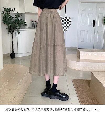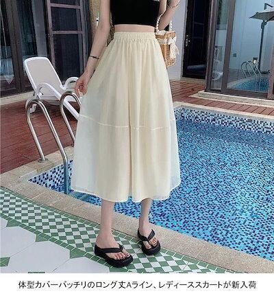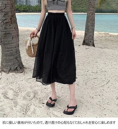 フレアスカート レディース ロングスカート 薄手 ギャザースカート ラインスカート 透明 裏地付き スカート マキシ丈 サマースカート ウエストゴム おしゃれ ボトムス ライン マキシスカート