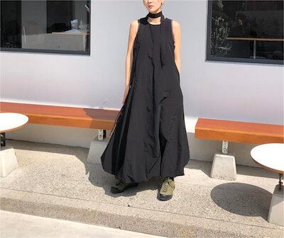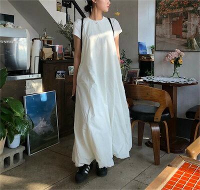 ワンピース ノースリーブ バルーンワンピース レディース 夏 ロングワンピース ロング丈 キレイめ マキシ丈ワンピース シンプル フレアワンピース ジャンパースカート 大きいサイズ 無地 ゆったり 体