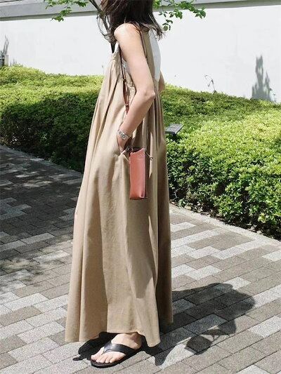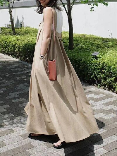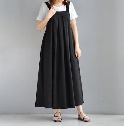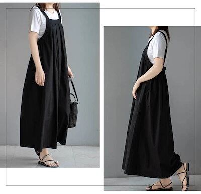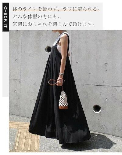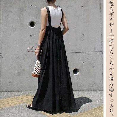 ジャンパースカート 夏 キャミワンピース レディース サロペットスカート ロングワンピース マキシ丈 タックデザイン ジャンスカ きれいめ マキシワンピース 大きいサイズ ゆったり 無地 大人カジュア
