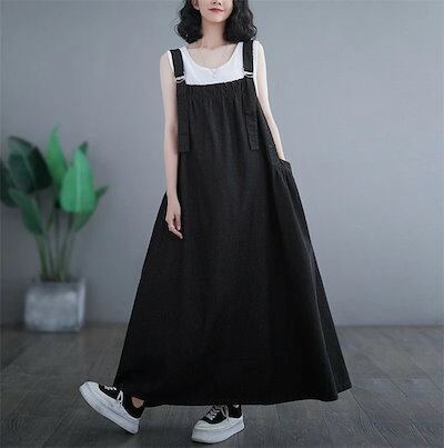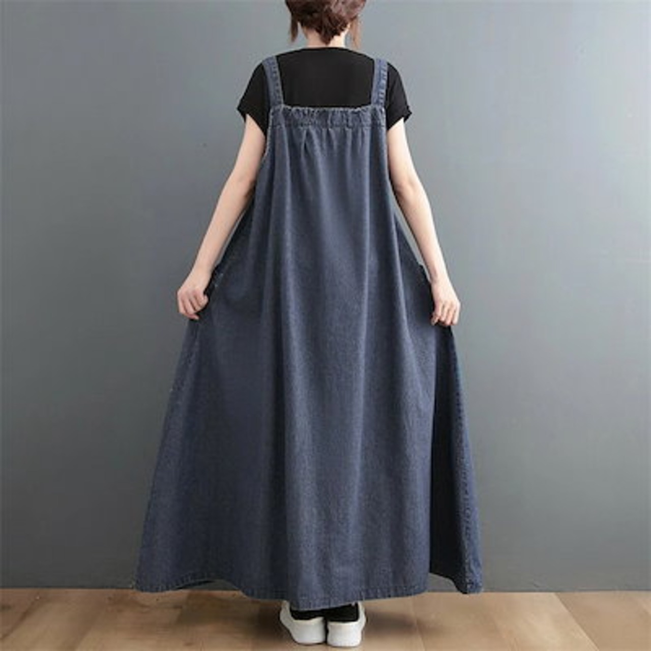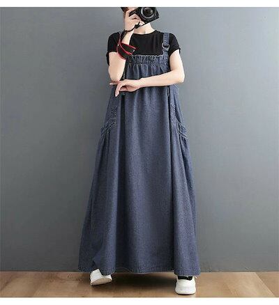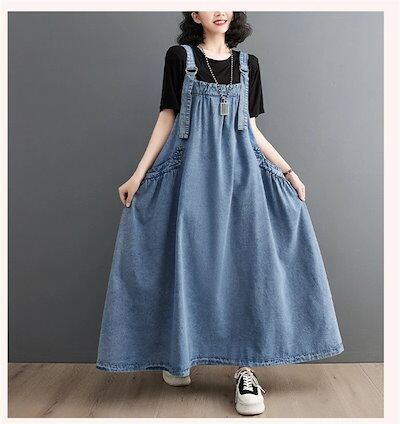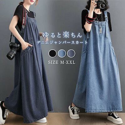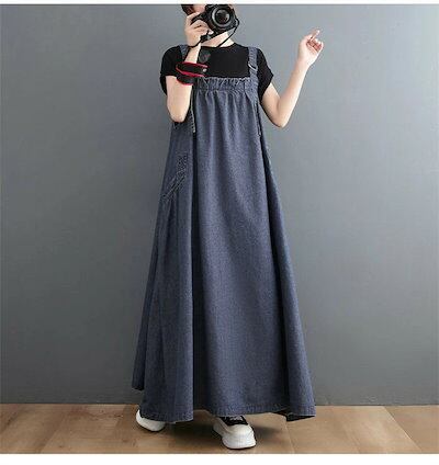 ジャンパースカート デニム レディース ロングワンピース デニム サロペットスカート 大きいサイズ ポケット マキシ丈 無地 春夏秋冬 ゆったり 体型カバー 着?せ 大人可愛い 森ガール カジュアル