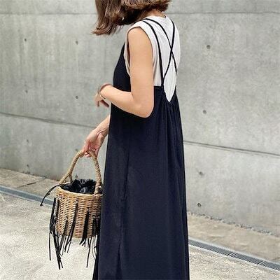 ワンピース キャミワンピース 夏 レディース ジャンパースカート ロングワンピ マキシ丈 きれいめ バッククロス ロング サロペット 大きいサイズ ゆったり キャミ 無地 大人カジュアル 大人可愛い