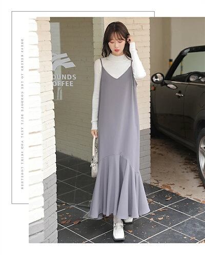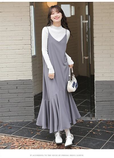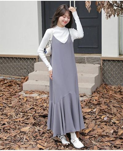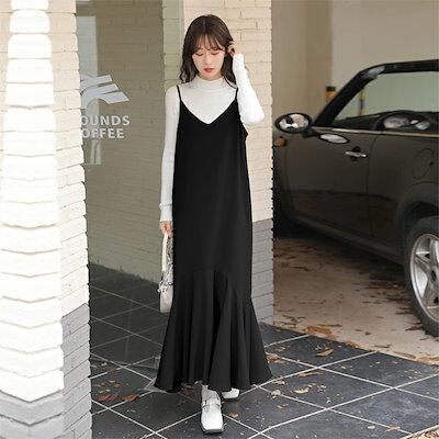 ジャンパースカート 大人 キャミワンピース レディース 大きいサイズ Vネック ロングジャンスカ サロペット ノースリーブ マキシ丈 レイヤード 重ね着 マーメイド フレアワンピース オールインワン