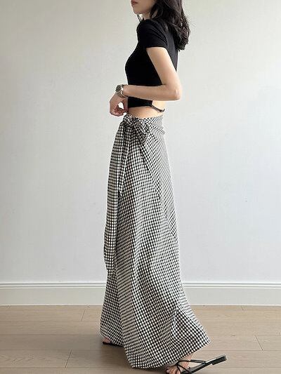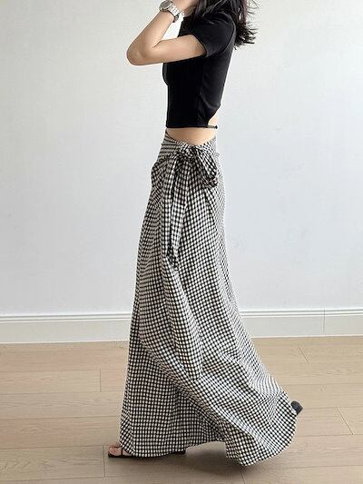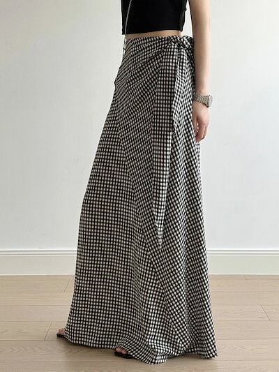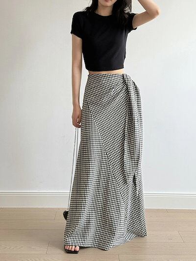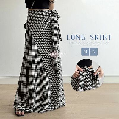 スカート レディース タイトスカート ロングスカート ウエストゴム ギンガムチェック マキシ丈 Aライン 体型カバー ゆったり カジュアル きれいめ 着痩せ 女性 大人 可愛い お洒落 森ガール 上品
