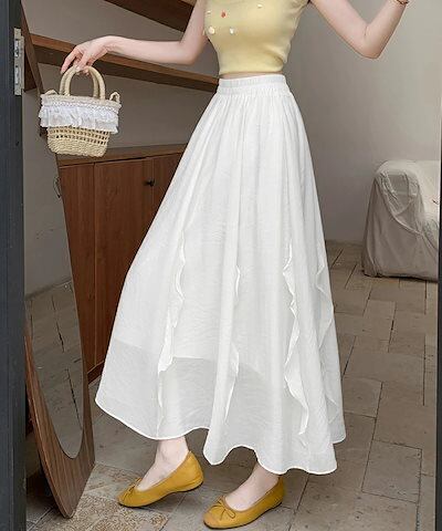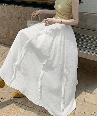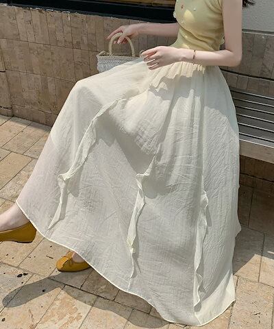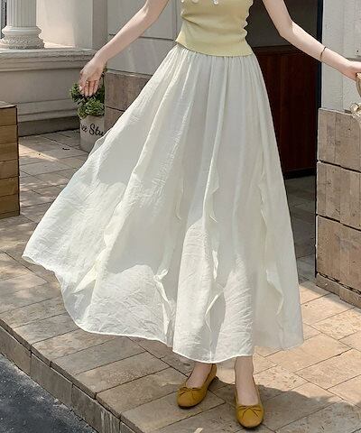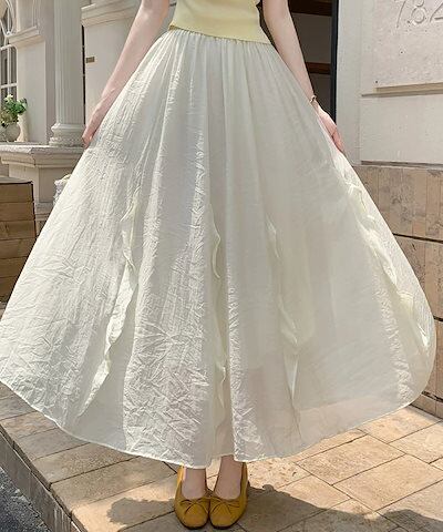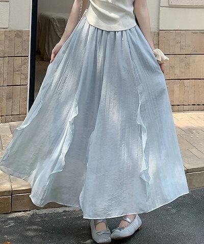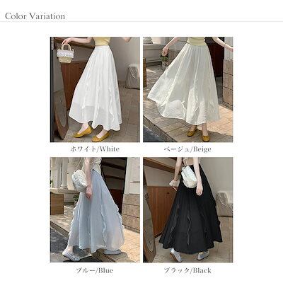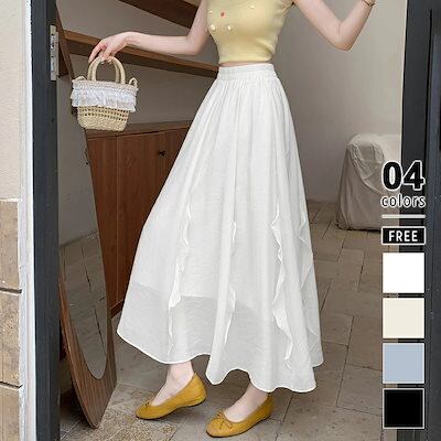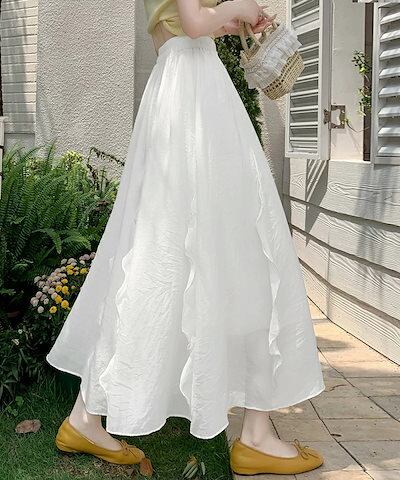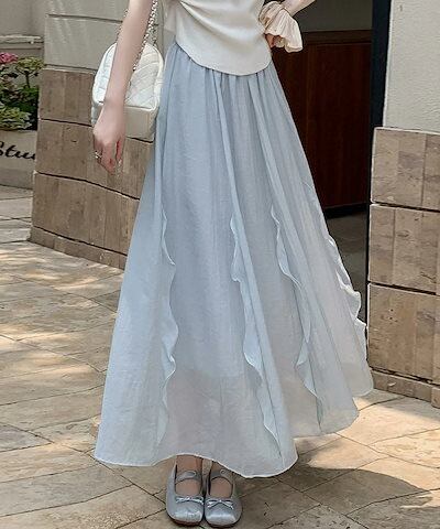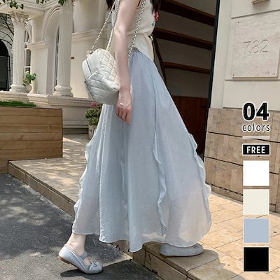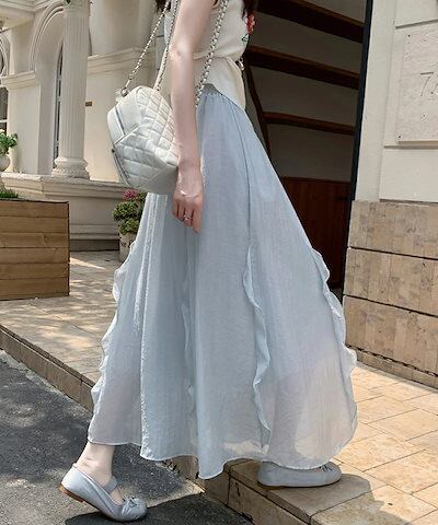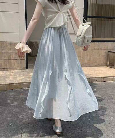 スカート フレアスカート ロング フリル レディース ロングスカート 涼しい マキシスカート Aライン マキシ丈 体型カバー aラインスカート 体型カバー ウエストゴム シフォンスカート