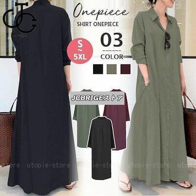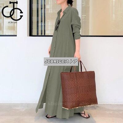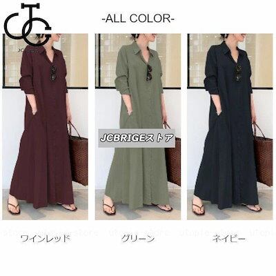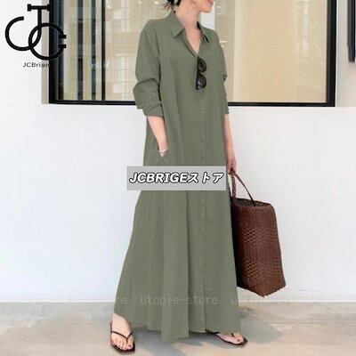 【即日出荷】シャツワンピース ロング 長袖 レディース ワンピース シャツ 春 夏 秋 マキシ丈 前開き 綿 aライン ポケット付き 大きいサイズ ゆったり おしゃれ