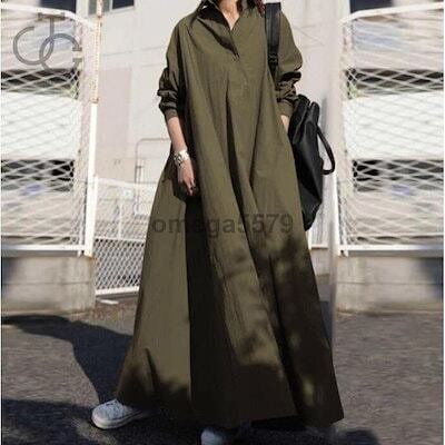 【即日出荷】シャツワンピース ワンピース 秋 春 レディース ロングワンピース 長袖 ロング丈 マキシ丈 体型カバー 無地 ゆったり 着痩せ 30代 40代 50代