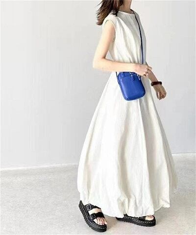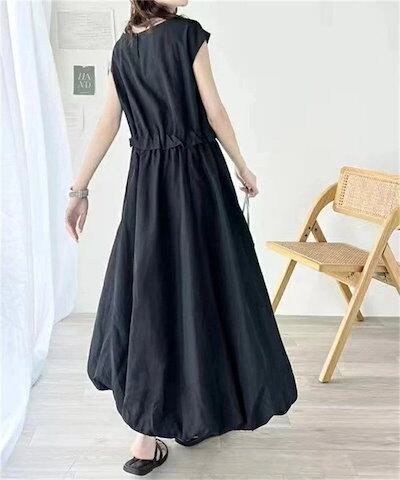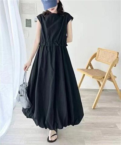 超人気,高評価!!レディース 夏 ロングワンピース きれいめ バルーン 大きいサイズ カジュアル マキシワンピース ロング ワンピース マキシ丈 Uネック ワンピ ウェストゴム バルーンスカート
