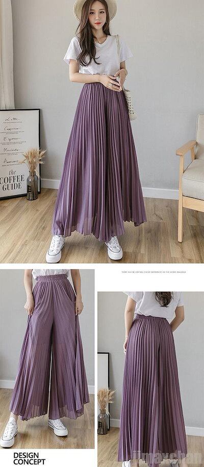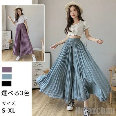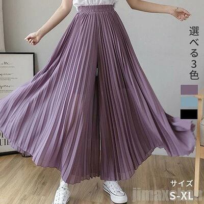限定カラーレディース ロングパンツ ボトムス ワイドパンツ ウエストゴム シフォンパンツ ガウチョパンツ プリーツスカート マキシ丈 プリーツパンツ カジュアルパンツ パンツ お洒落