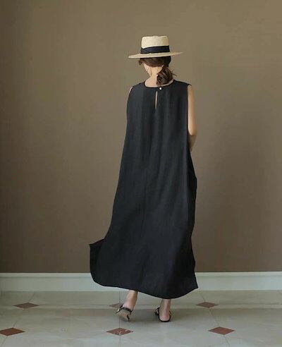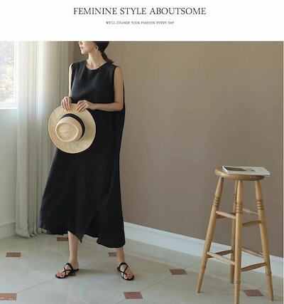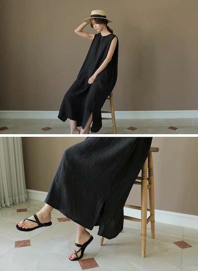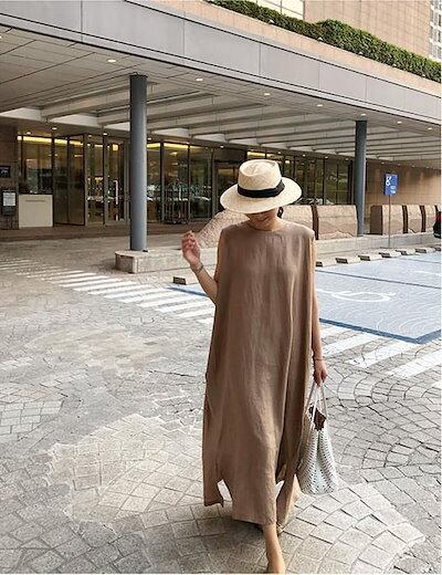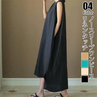 即日発送ワンピース マキシワンピース レディース 夏 ノースリーブ ワンピース マキシ丈 Aライン 綿麻風 ワンピース ノースリーブ ゆったり スリット フレアスカート 体型カバー 大きいサイズ シン