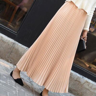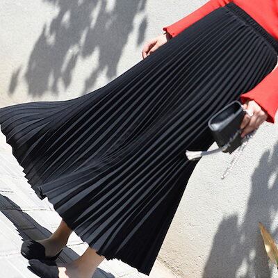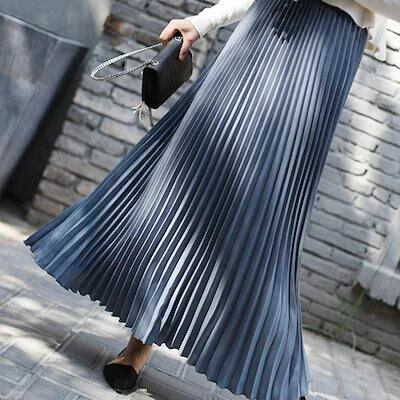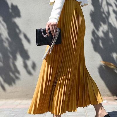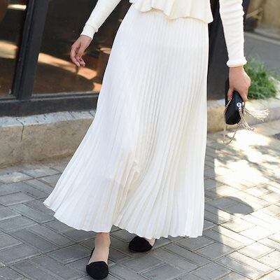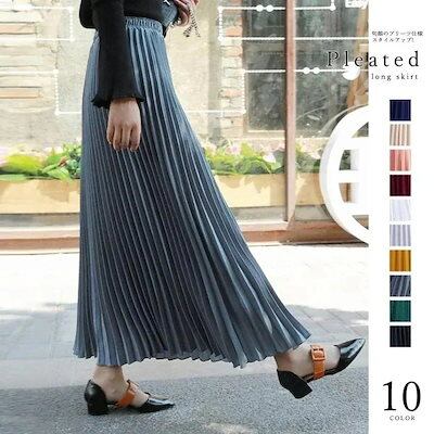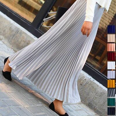 マキシ丈 プリーツ ウエストゴム フレアスカート プリーツスカート レディース ロングスカート マキシスカート ハイウエストスカート 大人
