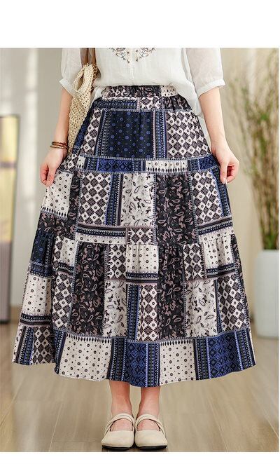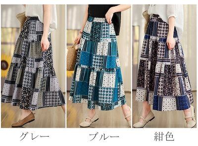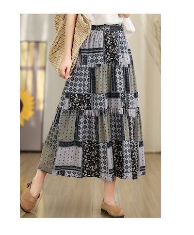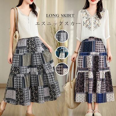 スカート ロング 夏 ロングスカート 春 ゴム スカート 夏 総柄 エスニック 春夏 ミモレ丈 マキシ丈 フレアスカート 低身長 マキシスカート 花柄 ボトムス レディース 体型カバー スカート ロン