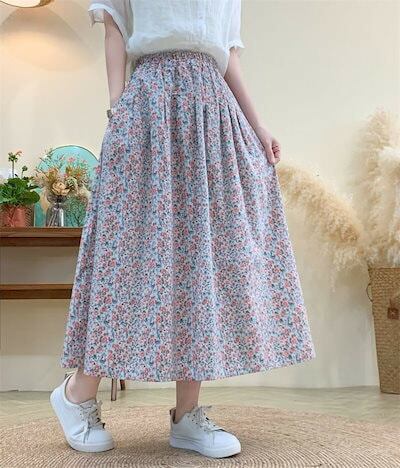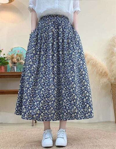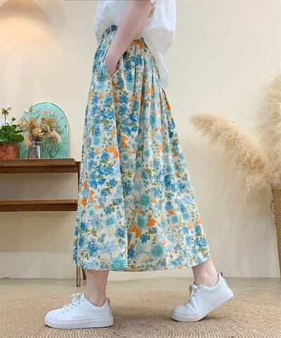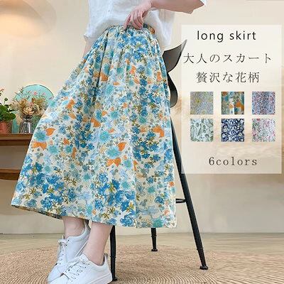 花柄スカート ロング 夏 ロングスカート 秋 ゴム スカート 春夏 ミモレ丈 マキシ丈 フレアスカート 低身長 マキシスカート 花柄 ボトムス レディース 体型カバー スカート ロンスカ ウエストゴム