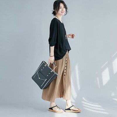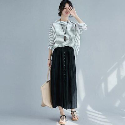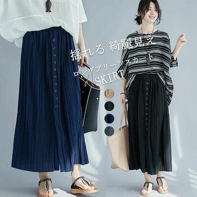 プリーツスカート ロング 春夏 ロングスカート 膝下 ひざ下 レディース ボトムス マキシ丈 ロング丈 フレアスカート ロンスカ aライン 無地 ウエストゴム ハイウエスト 夏 カート スリット マキ