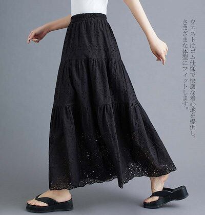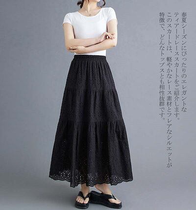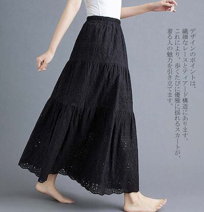 スカート ロングスカート レディース レース ティアードスカート ティアード レーススカート フレアスカート マキシスカート マキシ Aライン マキシ丈 ロング フレア ウエストゴム ゴム きれいめ