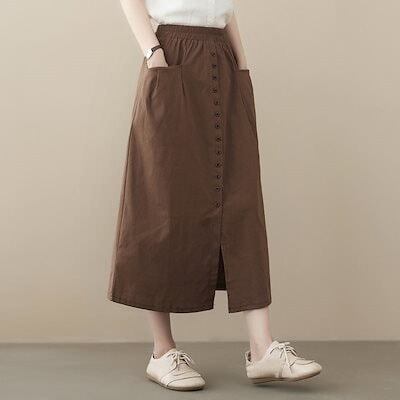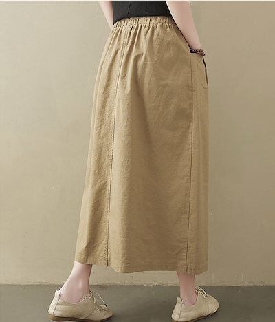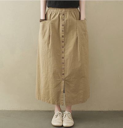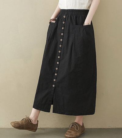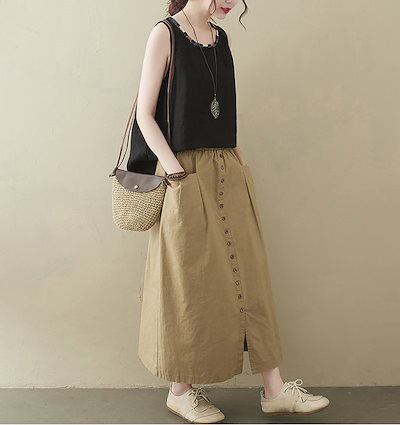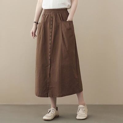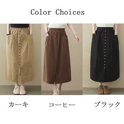 ロングスカート レディース 綿 麻 フレアスカート 春 夏 リネン ウエストゴム ポケット付き ハイウエスト スカート ボタン 前開き タック ボトムス 無地 Aライン マキシ丈 ミモレ丈 リネンスカ