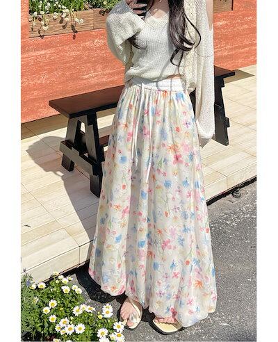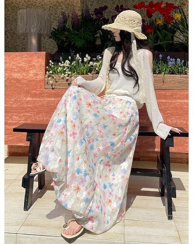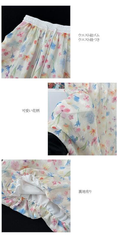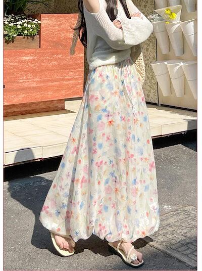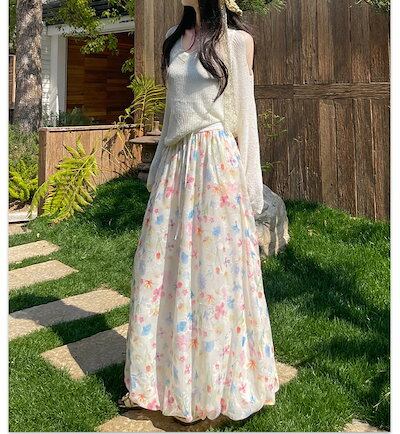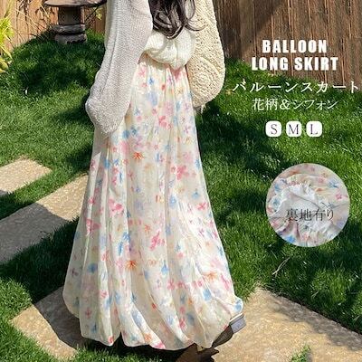 バルーンスカート レディース 花柄 夏 春 ロングスカート シフォン きれいめ スカート ボトムス 花柄ワンピース マキシ丈 Aラインスカート フレアスカート 可愛い Aライン フレア ハイウエスト