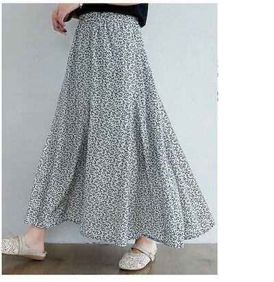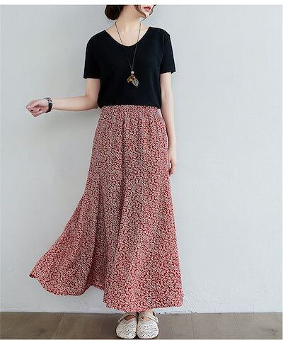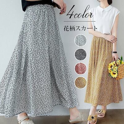 ロングスカート レディース フレアスカート ロング丈 スカート ロング Aライン aラインスカート 体型カバー シフォン 花柄 大きいサイズ マキシ丈 ゆったり ボトムス ウエストゴム 裏地あり 夏