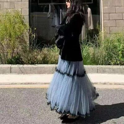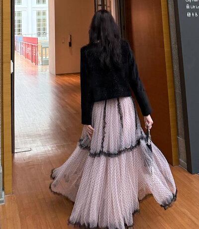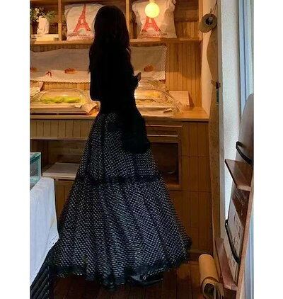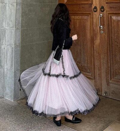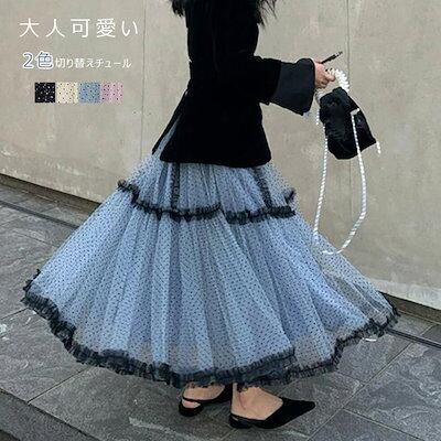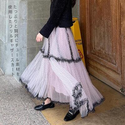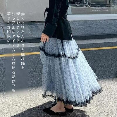 チュールスカート スカート レディース 夏 春 ボトムス マキシ ロングスカート フレアスカート ウエストゴム 水玉 マキシ丈 ドット柄 スカート フリル ボリューム ゆったり 動きやすい 秋 冬 体