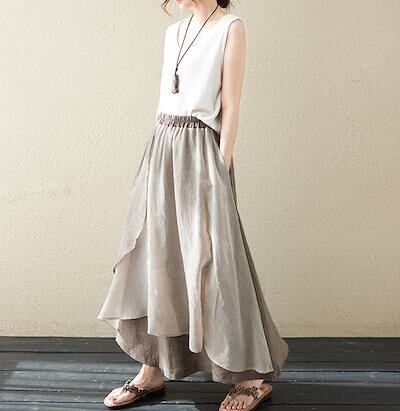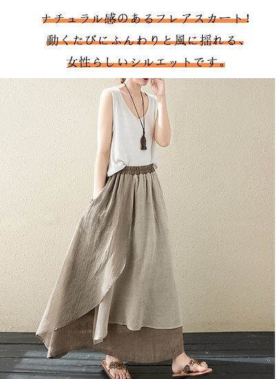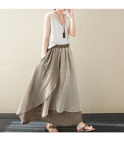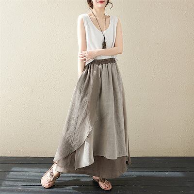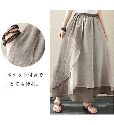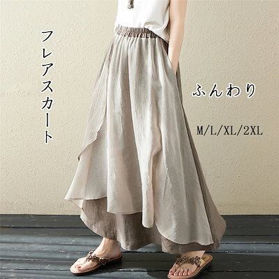 ロングスカート レディース フレアスカート 春夏 Aラインスカート 夏 ギャザースカート ロング丈 フレア ボトムス マキシ丈 aライン スカート アシンメトリー ドッキング 不規則 ポケット付き ウ