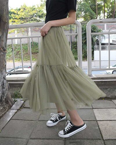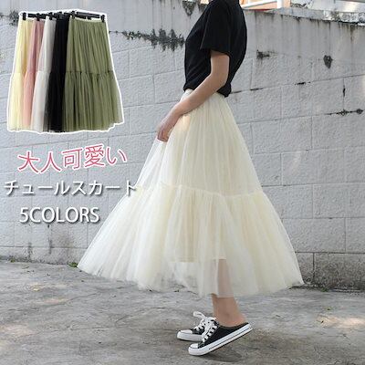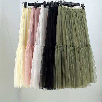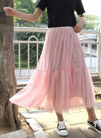 チュールスカート スカート レディース ロングスカート ロング丈 無地 裏地付き フレアスカート ドッキング ウエストゴム マキシ丈スカート ボリューム 大人 aライン フレア ボトムス ミモレ丈 大