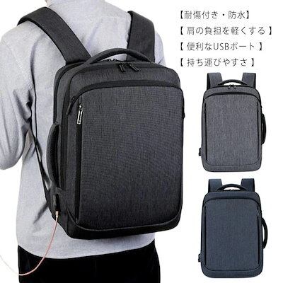 [6月新作]新作入荷 ビジネスリュック メンズ 薄型 軽量 防水 3WAY 通勤 リュックサック バックパック パソコンバッグ ビジネスバッグ 大容量 多機能 PC対応 15.6インチ USB充電ポー