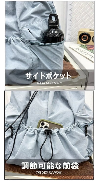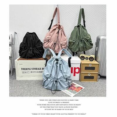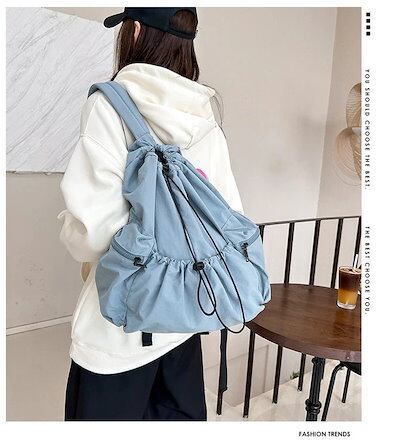 リュック 縄を引く付き 大容量 ショルダーバッグ レディース ナイロン ドローストリング かわいい 軽量 通勤 通学 ジップ ポケットいっぱい リュックサック バックパック 韓国人気 新学期 入学祝い