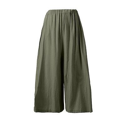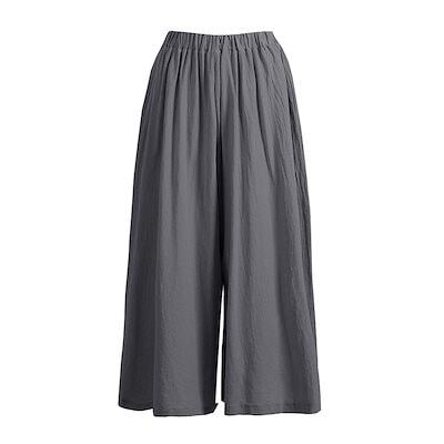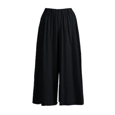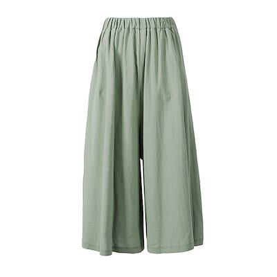 麻綿パンツスカートルーズ長め夏レディースワイドカジュアルポケットパンツ女性用2025無地