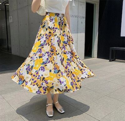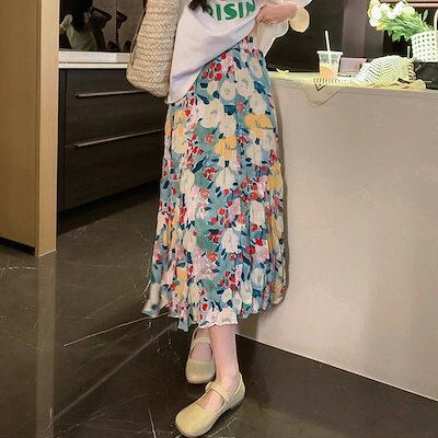 ティアードスカート マキシスカート 2025夏 新作 おしゃれ ハイウエスト スカート 着痩せ プリーツスカート レディースファッション 花柄スカート 気質 可愛い プリーツスカート ロングスカ