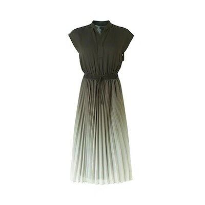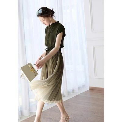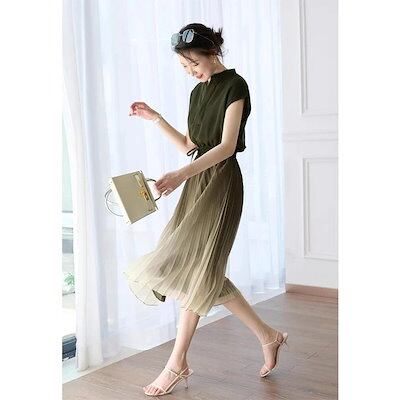 半袖韓国風 レディース 通勤30代40代新品 シンプル Vネックロング グラデーション体型カバー 夏 着痩せ 結婚式 ゆったりおしゃれ シフォン ワンピース マキシ丈