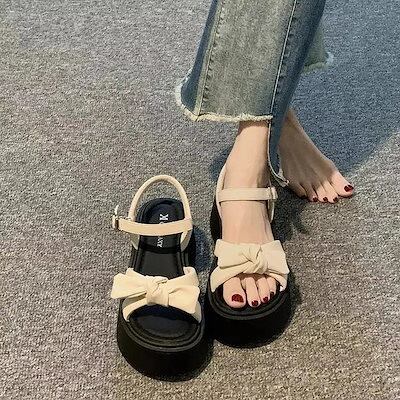 シャネル風 レディース バタフライ サンダル 厚底 プラットフォーム 夏 アウトドア ヴィンテージ フェミニン ロングスカート 合わせ ローレット 小柄 背伸び ローマ風 サンダル